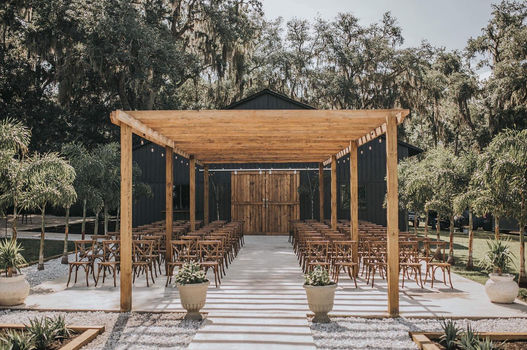 We Provide chairs for your ceremony, and a different set up of the same style chairs for your reception in the barn .